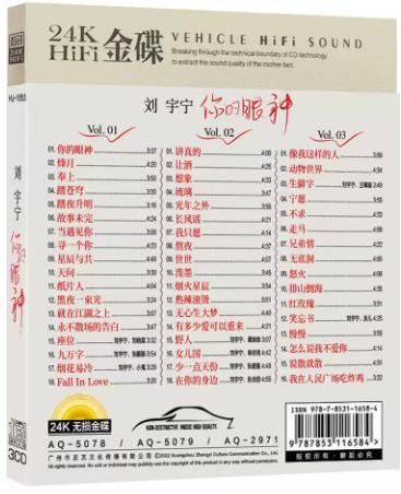 劉宇寧你的眼神24K無損金碟3CD專輯,全新未拆封,德國工藝製作,音質超好,一盒3張碟片,帶歌詞本,適合車載和家用